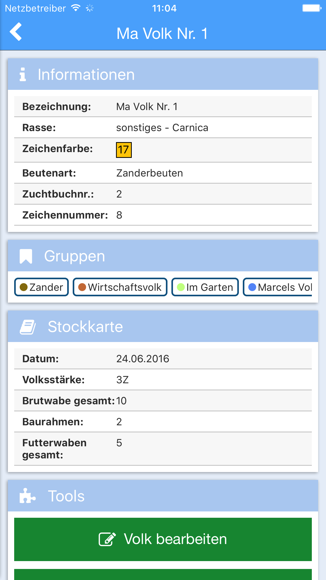 Vorschau der Imkersoftware für iPhone